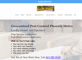 RidABird Pest Control has been helping homes and busineses with their pest control in the Phoenix Arizona area for more than 35 years. We have proudly provided our Arizona pest control and bird control customers with the best service, extraordinary reliability, and affordable pricing. RidABird Pest Control technicians use only the highest quality products. We back every job with an unconditional satisfaction guarantee and a warranty.